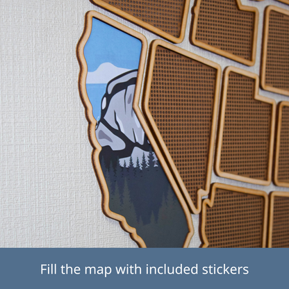 - Fill with included stickers - use the included wanderlust sticker pack on states you’ve been to.