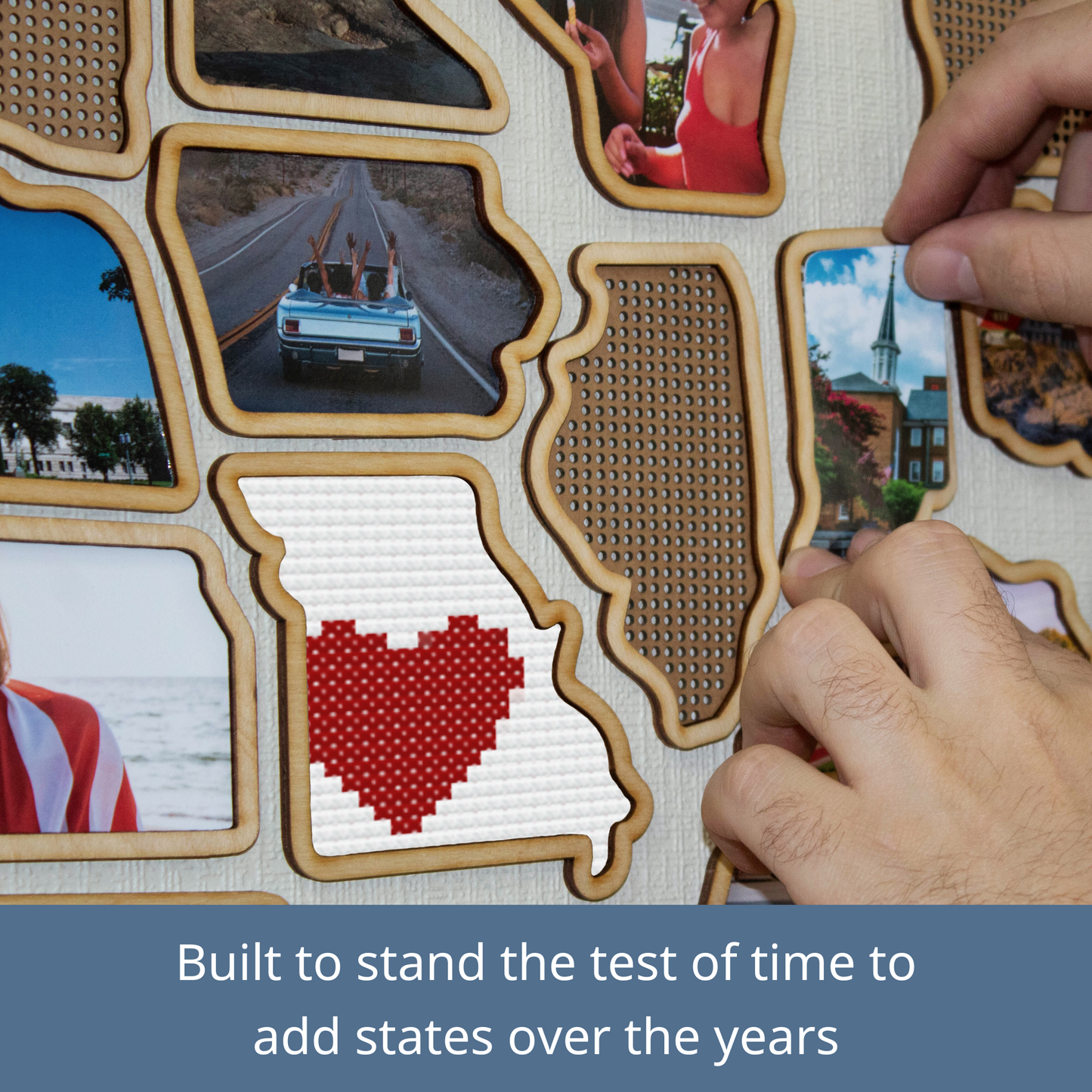 Wooden USA Photo & Cross Stitch Map - 3in1
